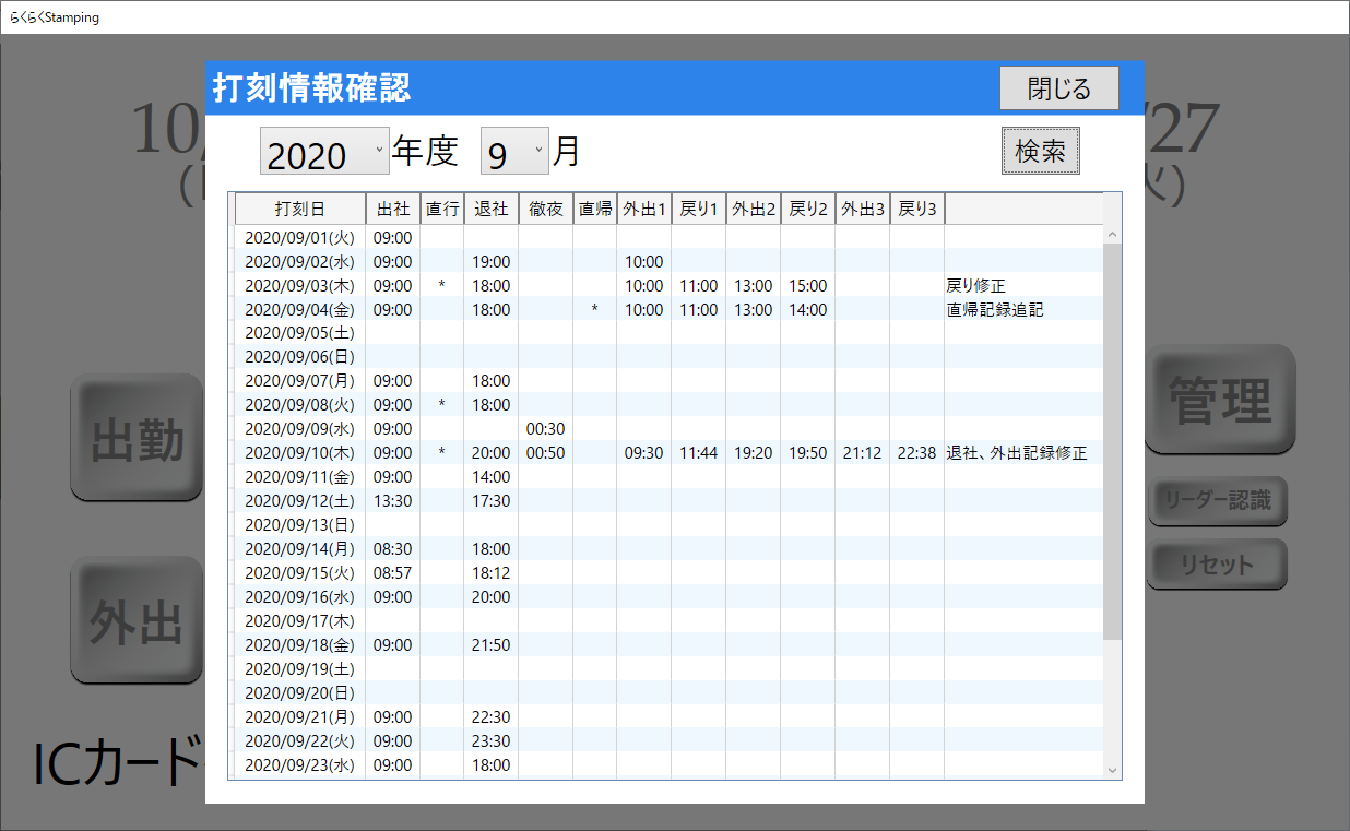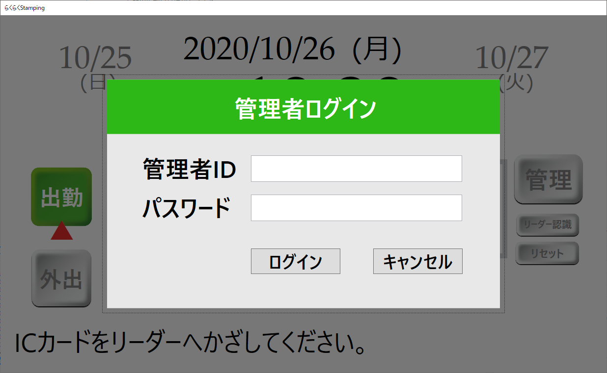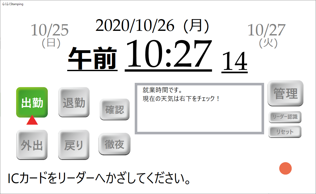 ・Windowsタブレットもしくは画面タッチ機能のついたMicrosoftWindows10がインストールされたPCと、一般に入手可能なICカードリーダを用意するだけで簡単に勤怠管理ができます。